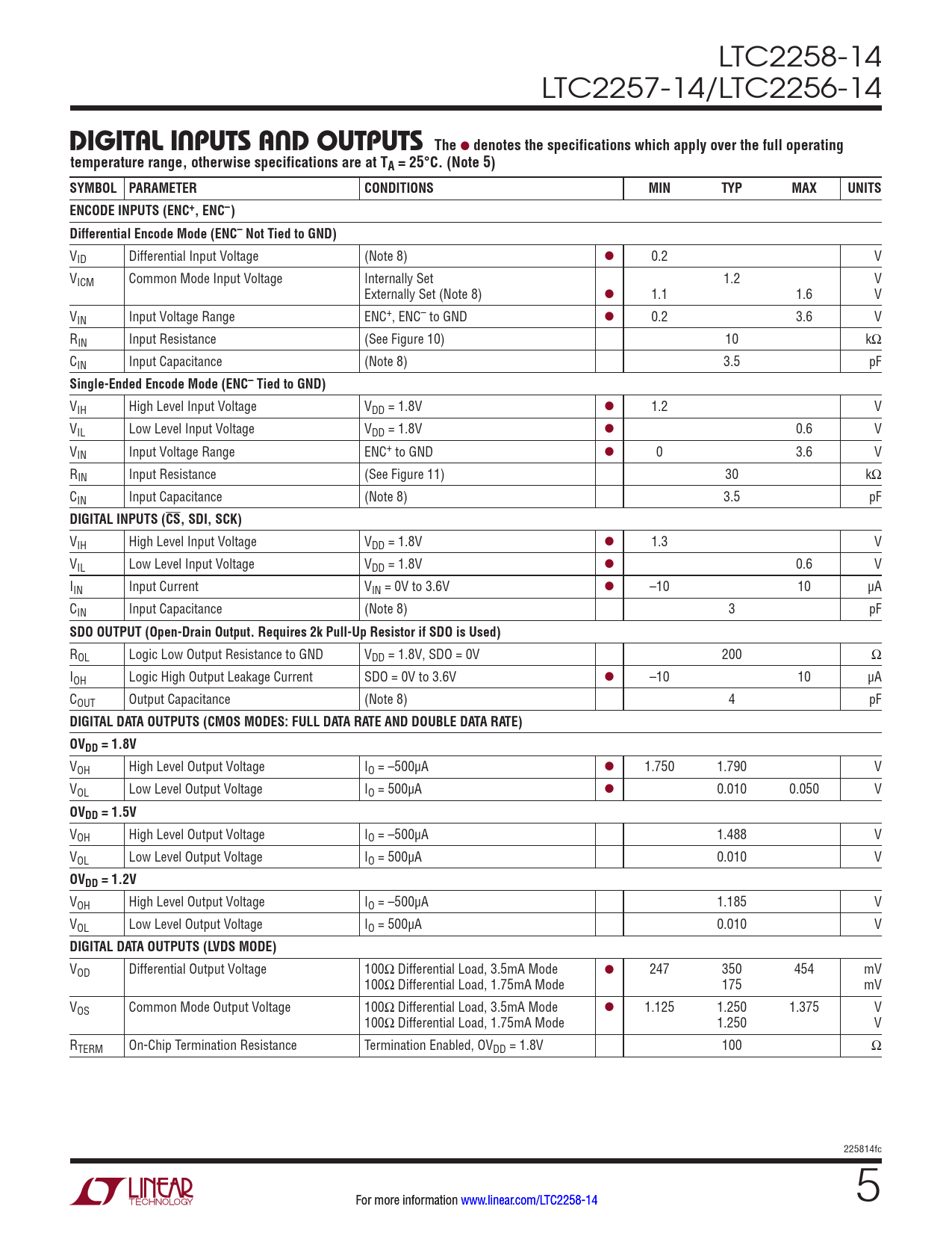 Datasheet LTC2258-14, LTC2257-14, LTC2256-14 (Analog Devices) - 5
