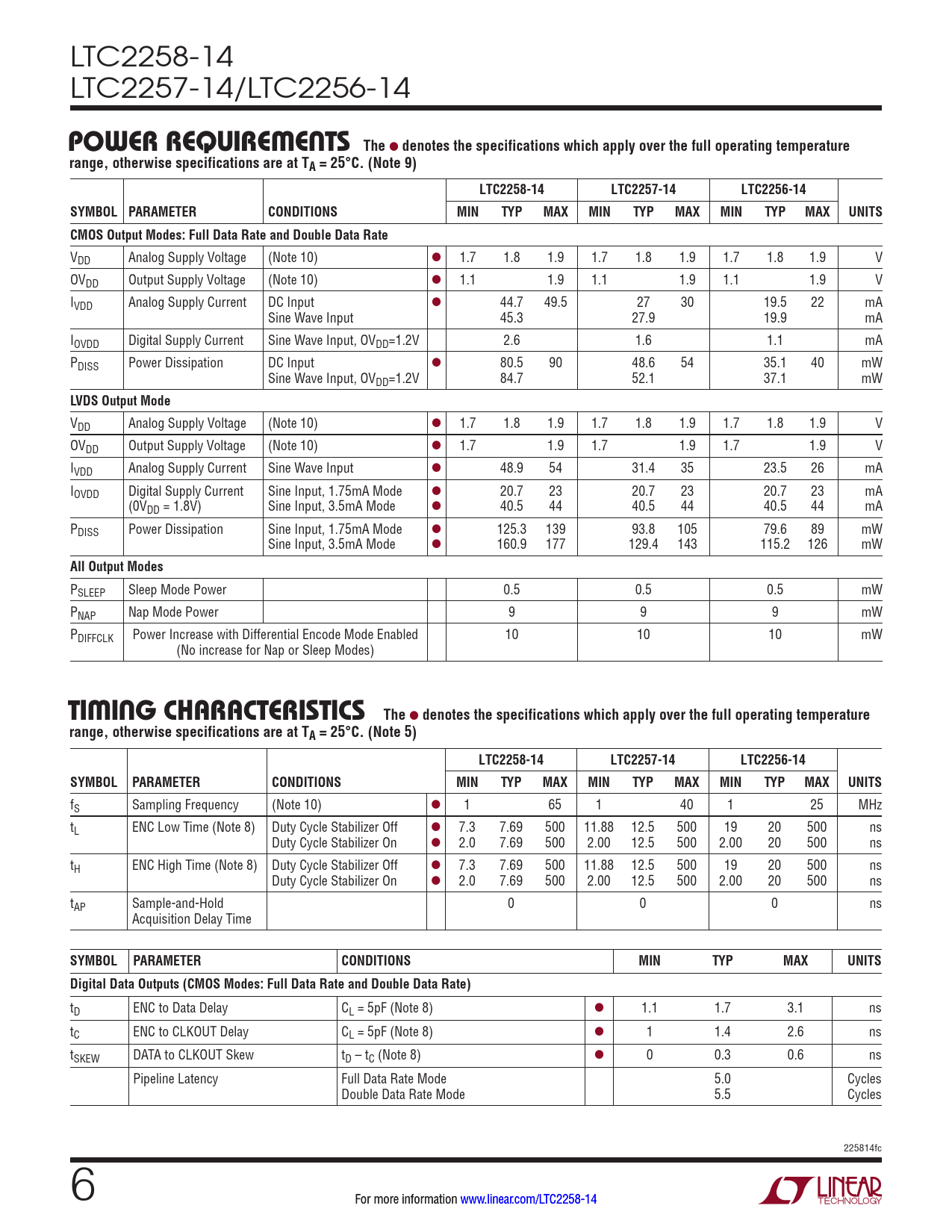 Datasheet LTC2258-14, LTC2257-14, LTC2256-14 (Analog Devices) - 6