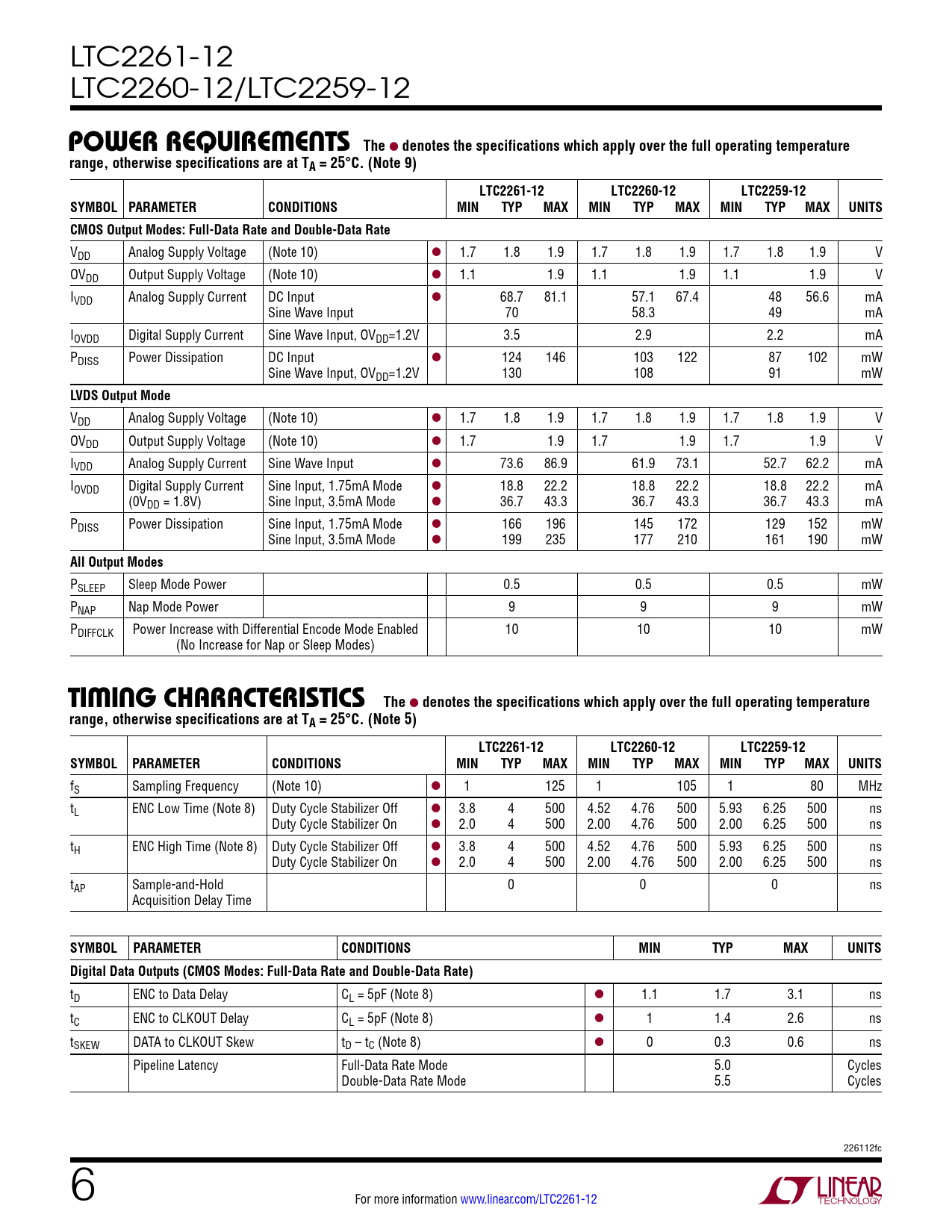 Datasheet LTC2261-12, LTC2260-12, LTC2259-12 (Analog Devices) - 6
