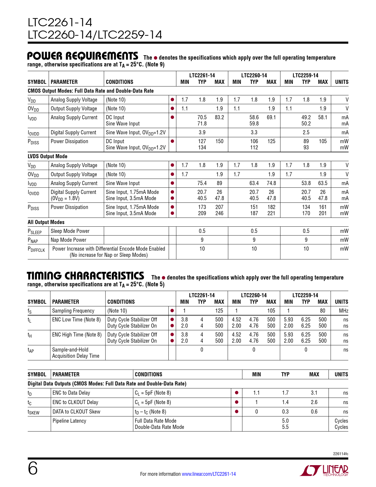 Datasheet LTC2261-14, LTC2260-14, LTC2259-14 (Analog Devices) - 6