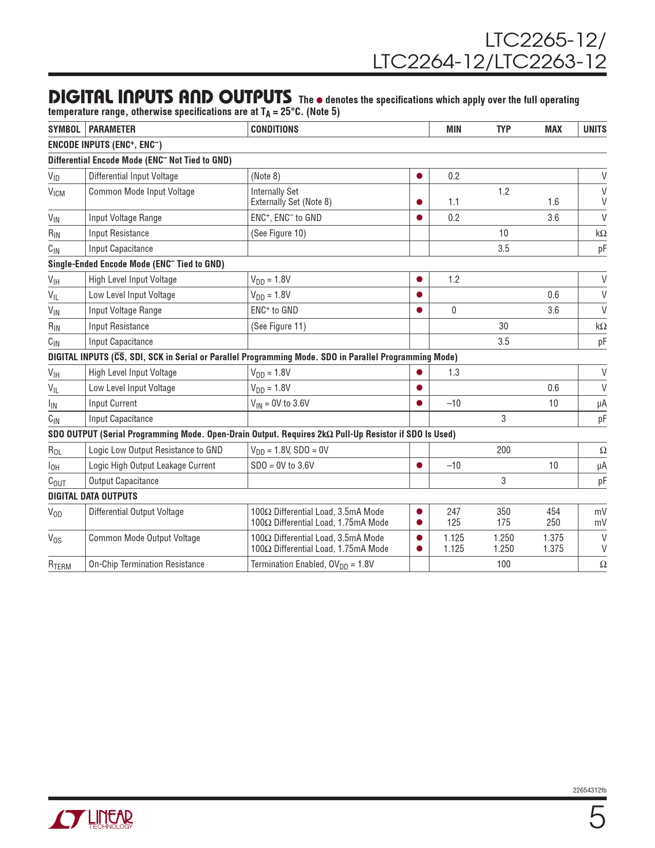 Datasheet LTC2265-12, LTC2264-12, LTC2263-12 (Analog Devices) - 5