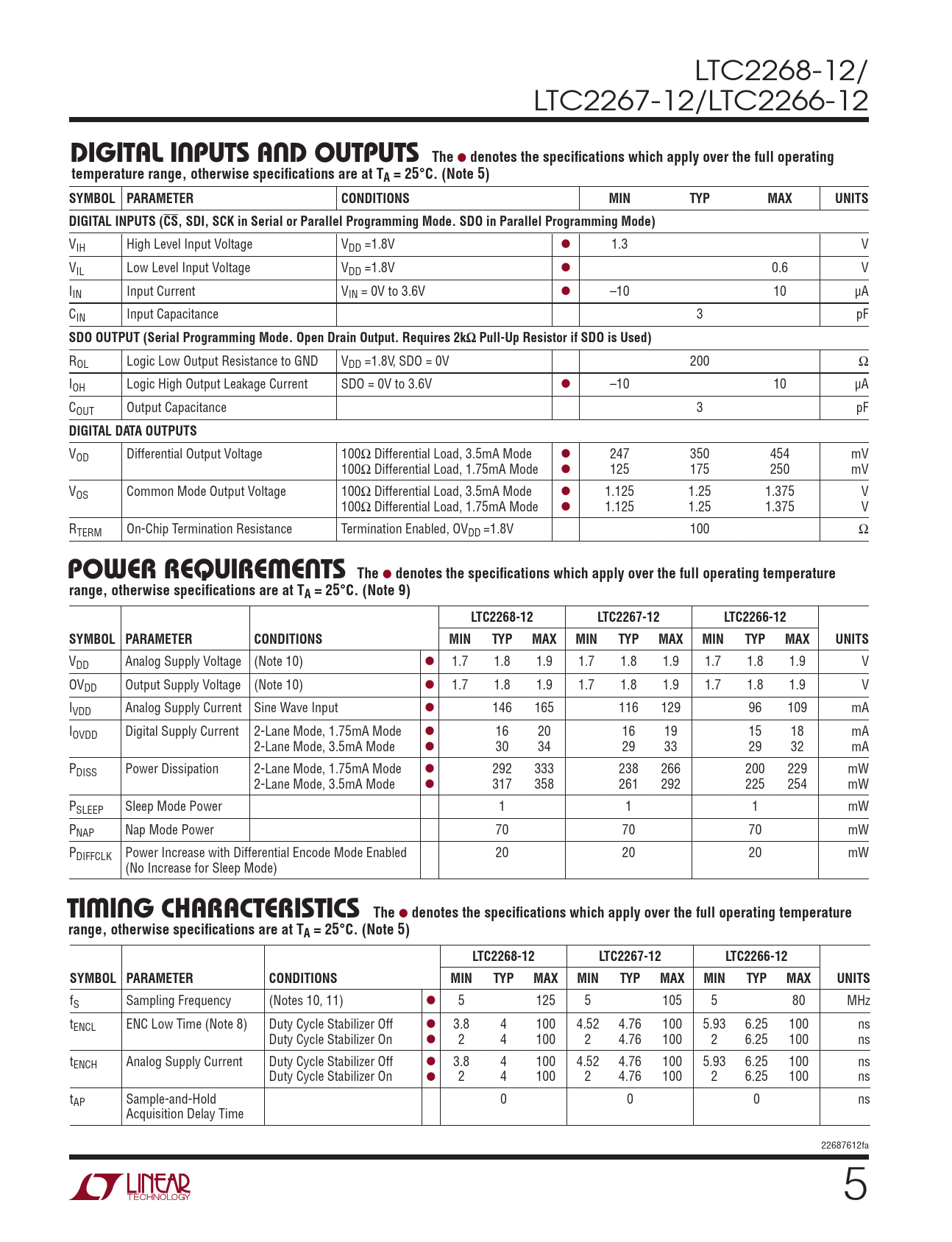 Datasheet LTC2268-12, LTC2267-12, LTC2266-12 (Analog Devices) - 5
