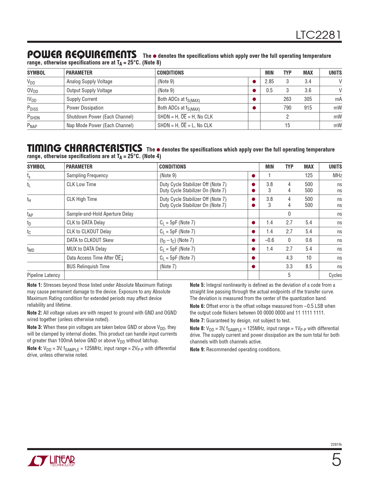 Datasheet LTC2281 (Analog Devices) - 5