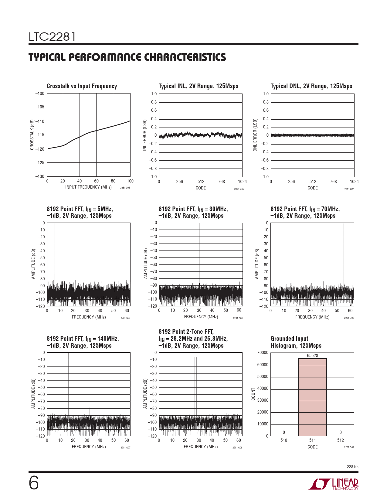 0 0 70000 65528 –10 –10 –20 –20 60000 –30 –30 50000 –40 –40 –50 –50 40000 –60 –60 COUNT –70 –70 30000 AMPLITUDE (dB) –80 AMPLITUDE (dB) –80 20000 –90 –90 –100 –100 10000 –110 –110 0 0 –120 –120 0 0 10 20 30 40 50 60 0 10 20 30 40 50 60 510 511 512 FREQUENCY (MHz) 2281 G07 FREQUENCY (MHz) 2281 G08 CODE 2281 G09 2281fb 6