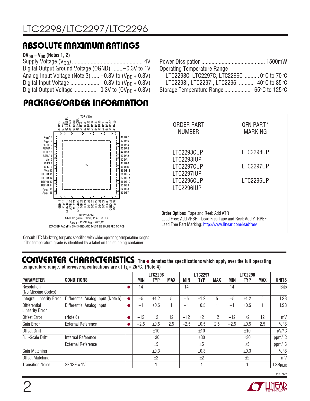 Datasheet LTC2298, LTC2297, LTC2296 (Analog Devices) - 2