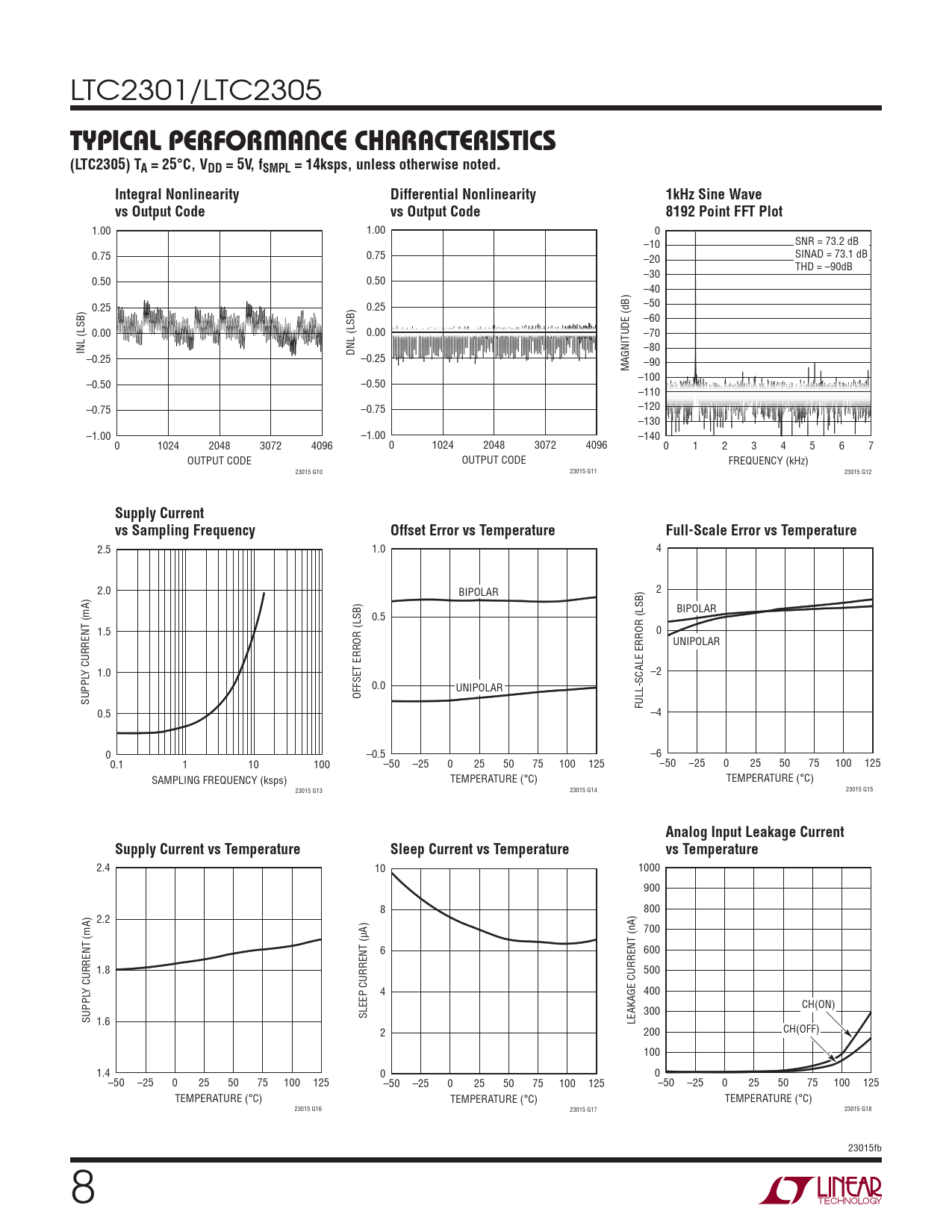 TYPICAL PERFORMANCE CHARACTERISTICS (LTC2305) TA = 25°C, VDD = 5V, fSMPL = 14ksps, unless otherwise noted