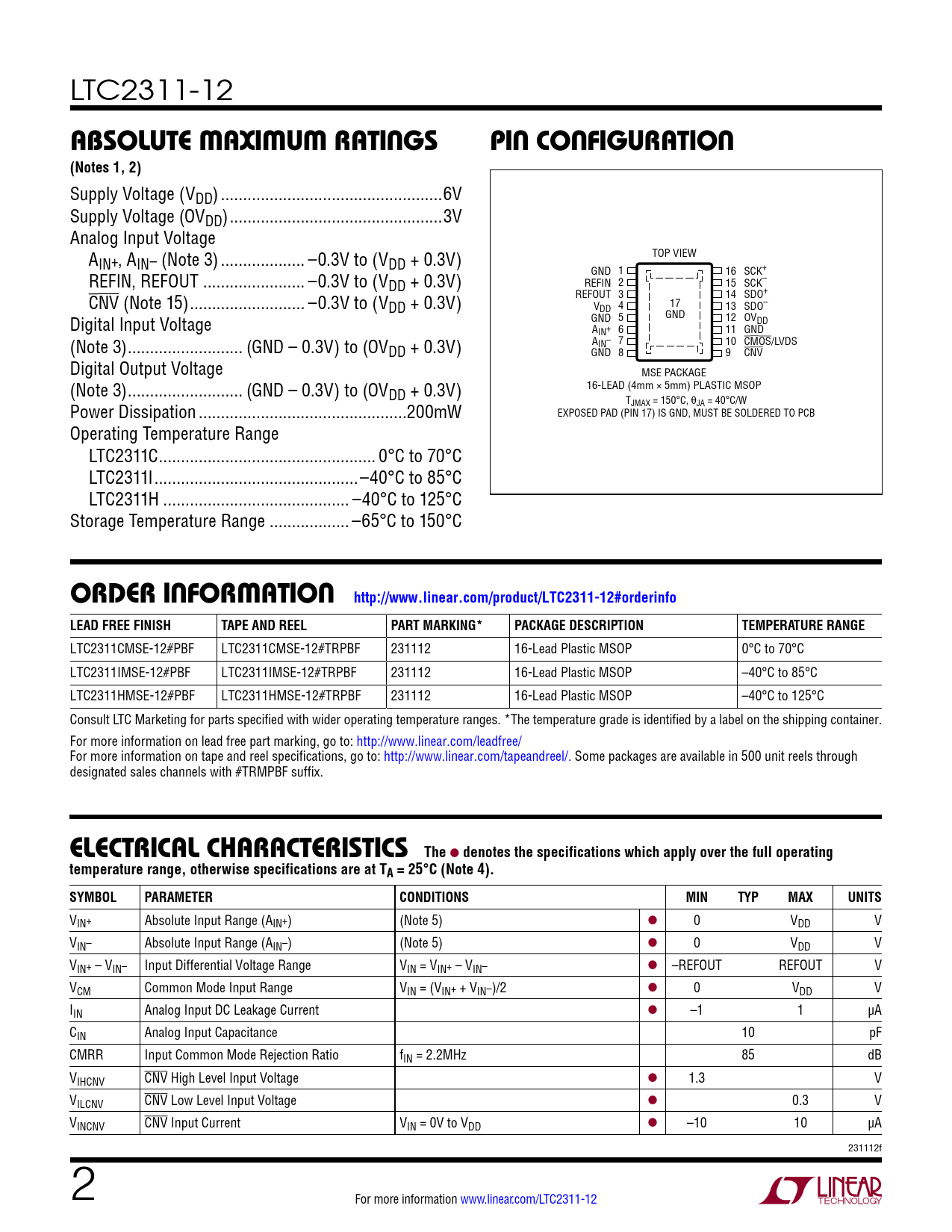 Datasheet LTC2311-12 (Analog Devices) - 2