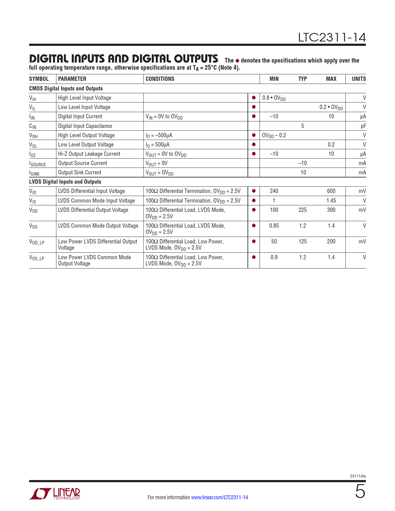 Datasheet LTC2311-14 (Analog Devices) - 5