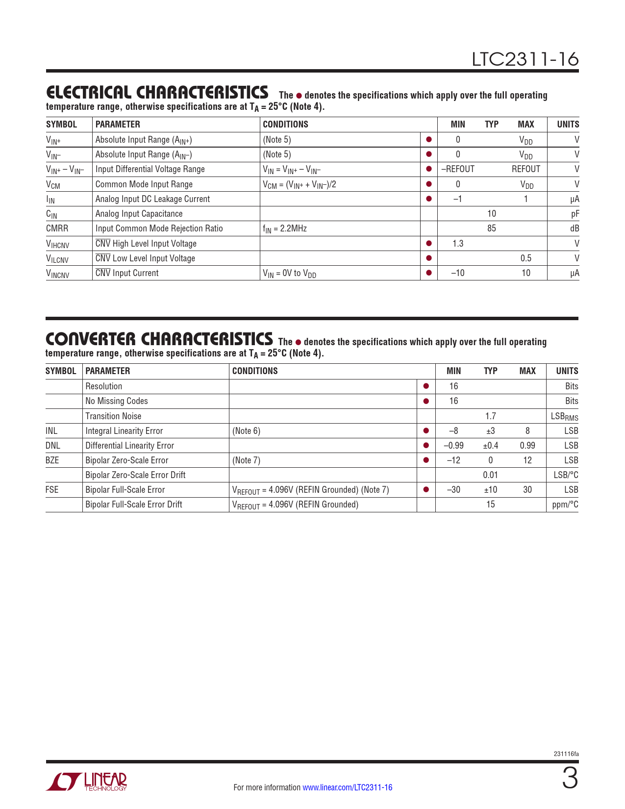 Datasheet LTC2311-16 (Analog Devices) - 3