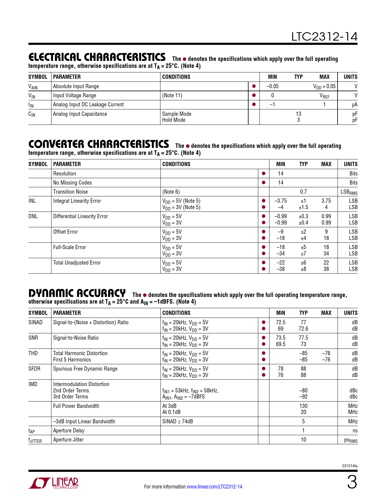 Datasheet LTC2312-14 (Analog Devices) - 3
