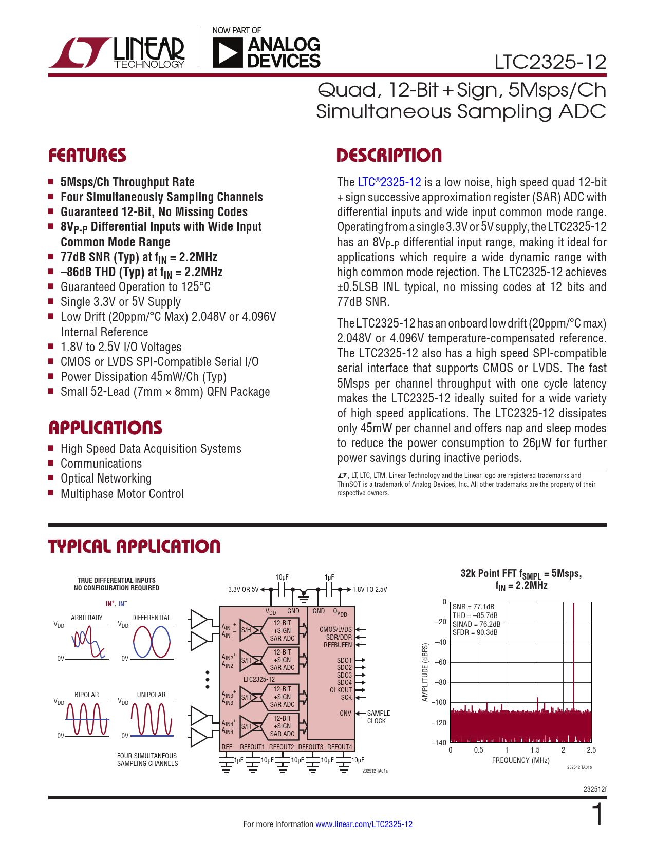 The LTC®2325-12 is a low noise, high speed quad 12-bit n