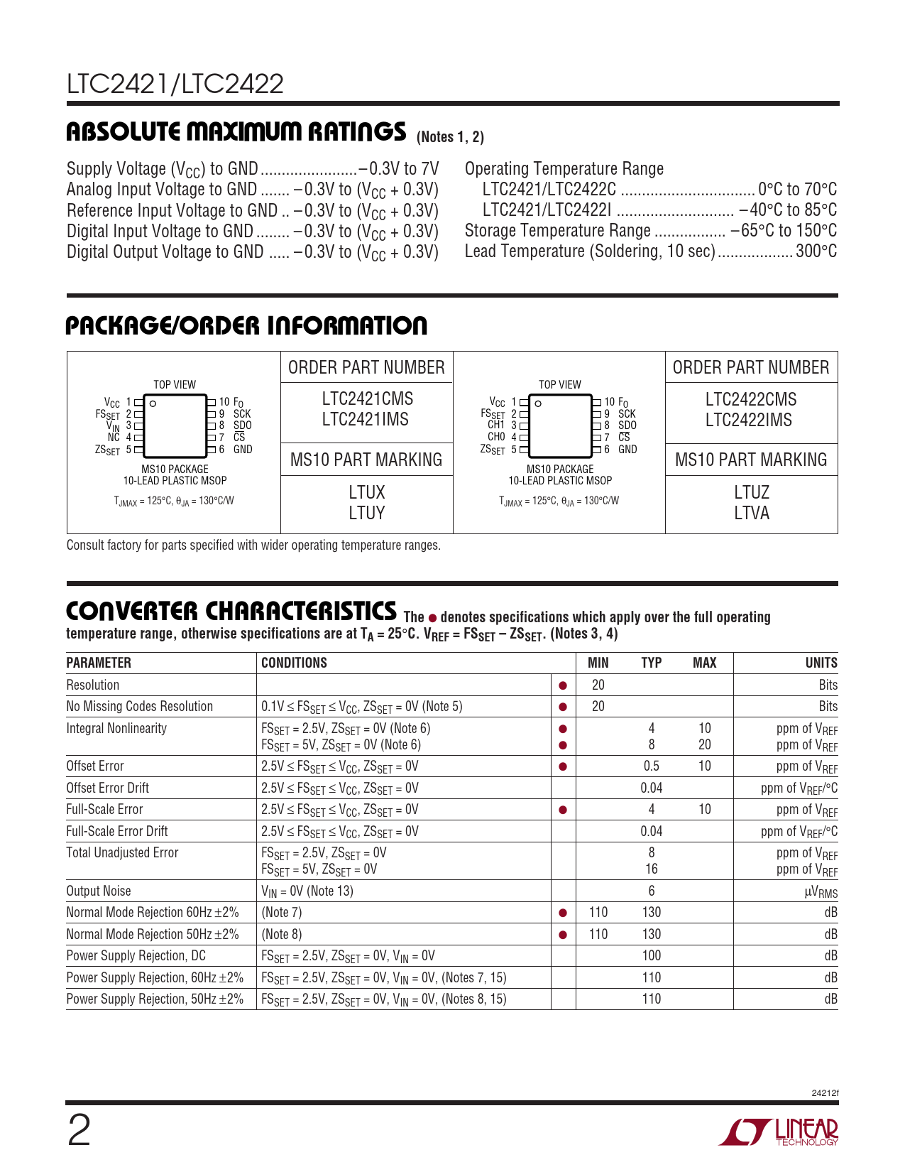 Datasheet LTC2421, LTC2422 (Analog Devices) - 2