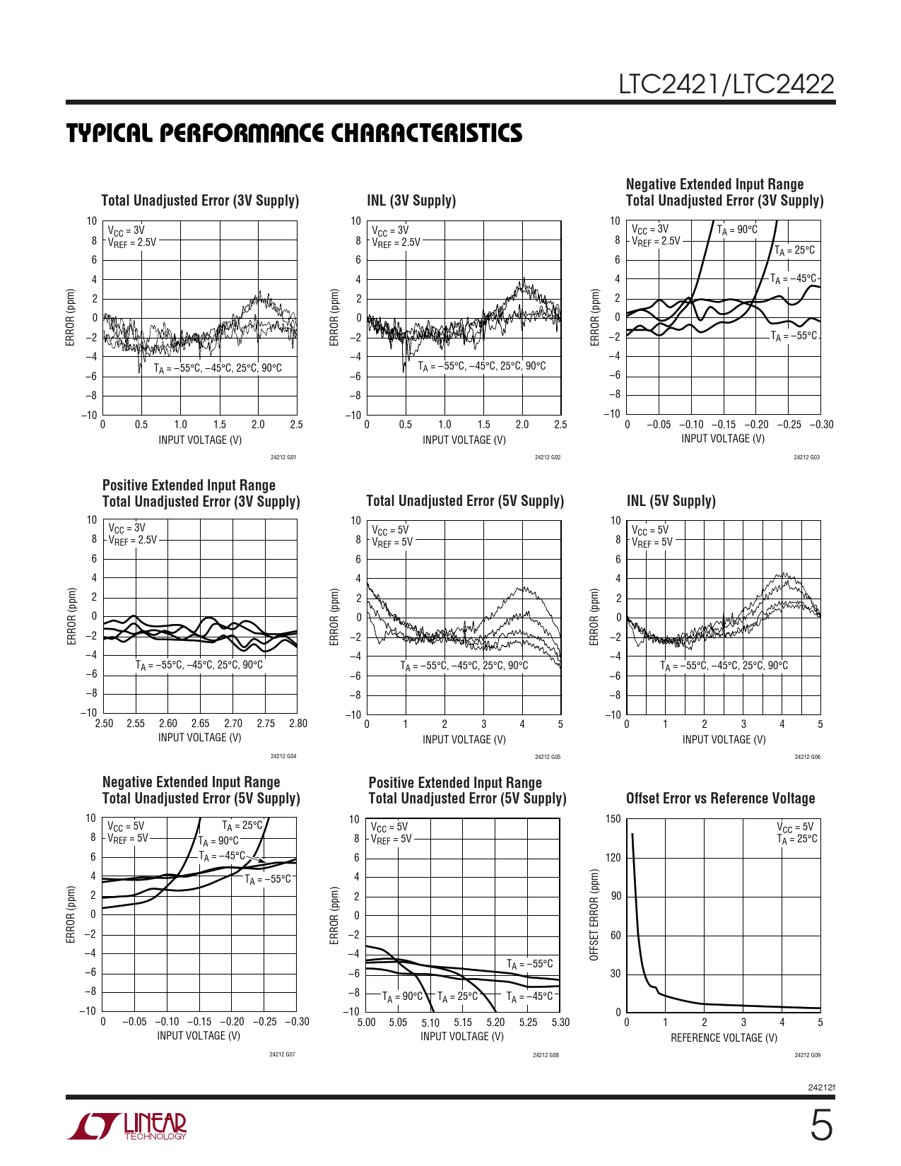 Negative Extended Input Range Positive Extended Input Range Total Unadjusted Error (5V Supply) Total Unadjusted Error (5V Supply) Offset Error vs Reference Voltage