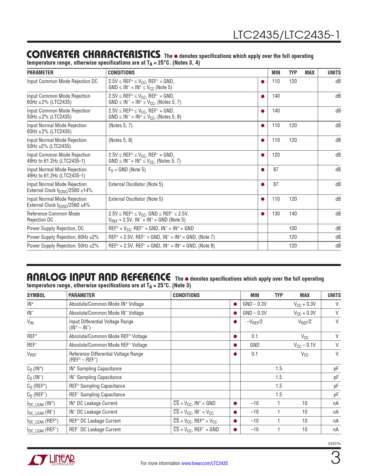 Datasheet LTC2435, LTC2435-1 (Analog Devices) - 3
