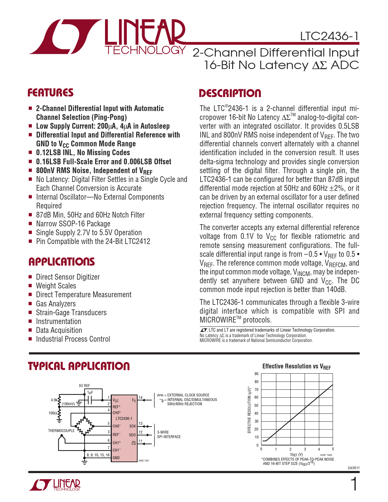 LTC2436-1 2-Channel Differential Input 16-Bit No Latency ∆Σ ADC