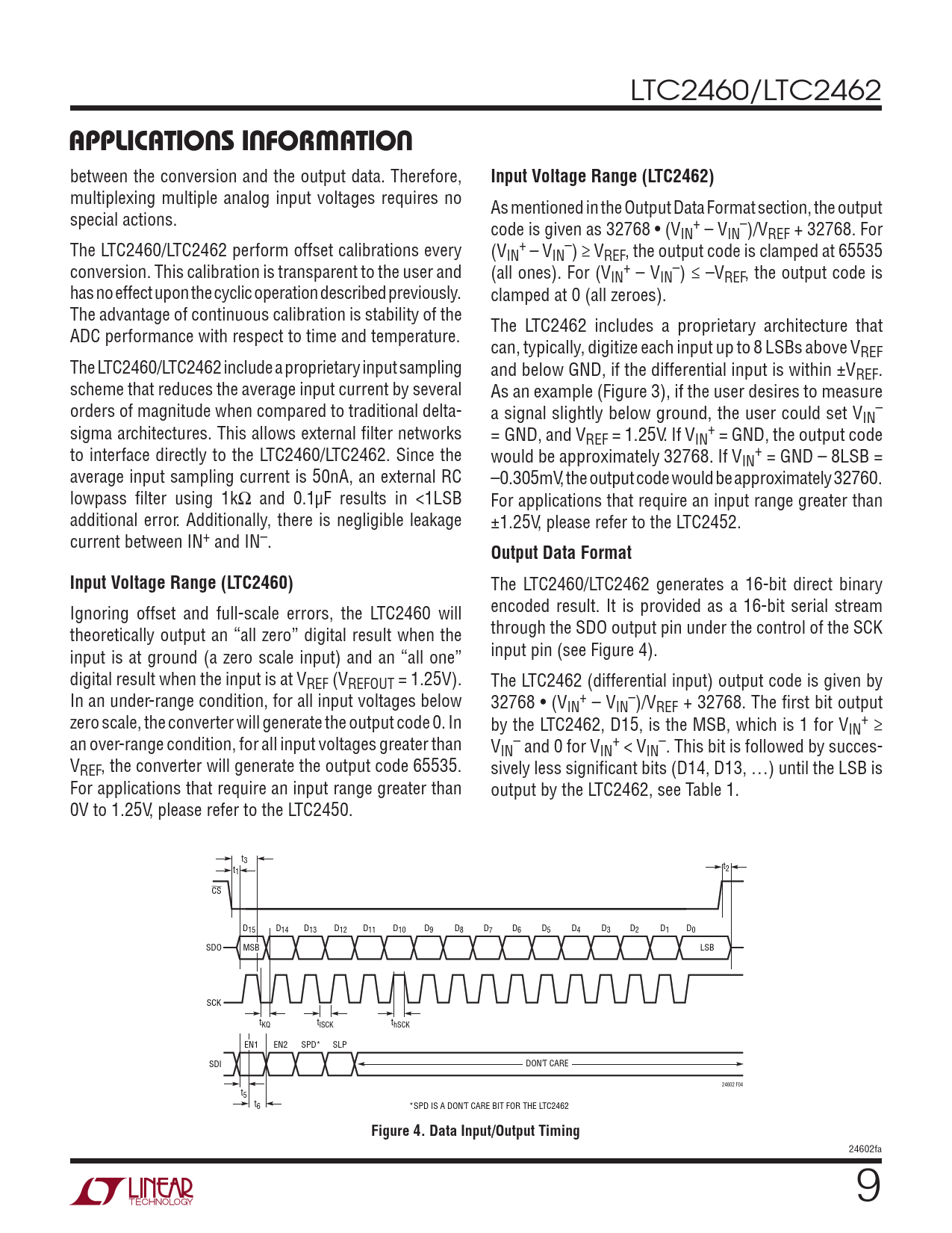 applicaTions inForMaTion. Input Voltage Range (LTC2462). Output Data Format. Input Voltage Range (LTC2460)