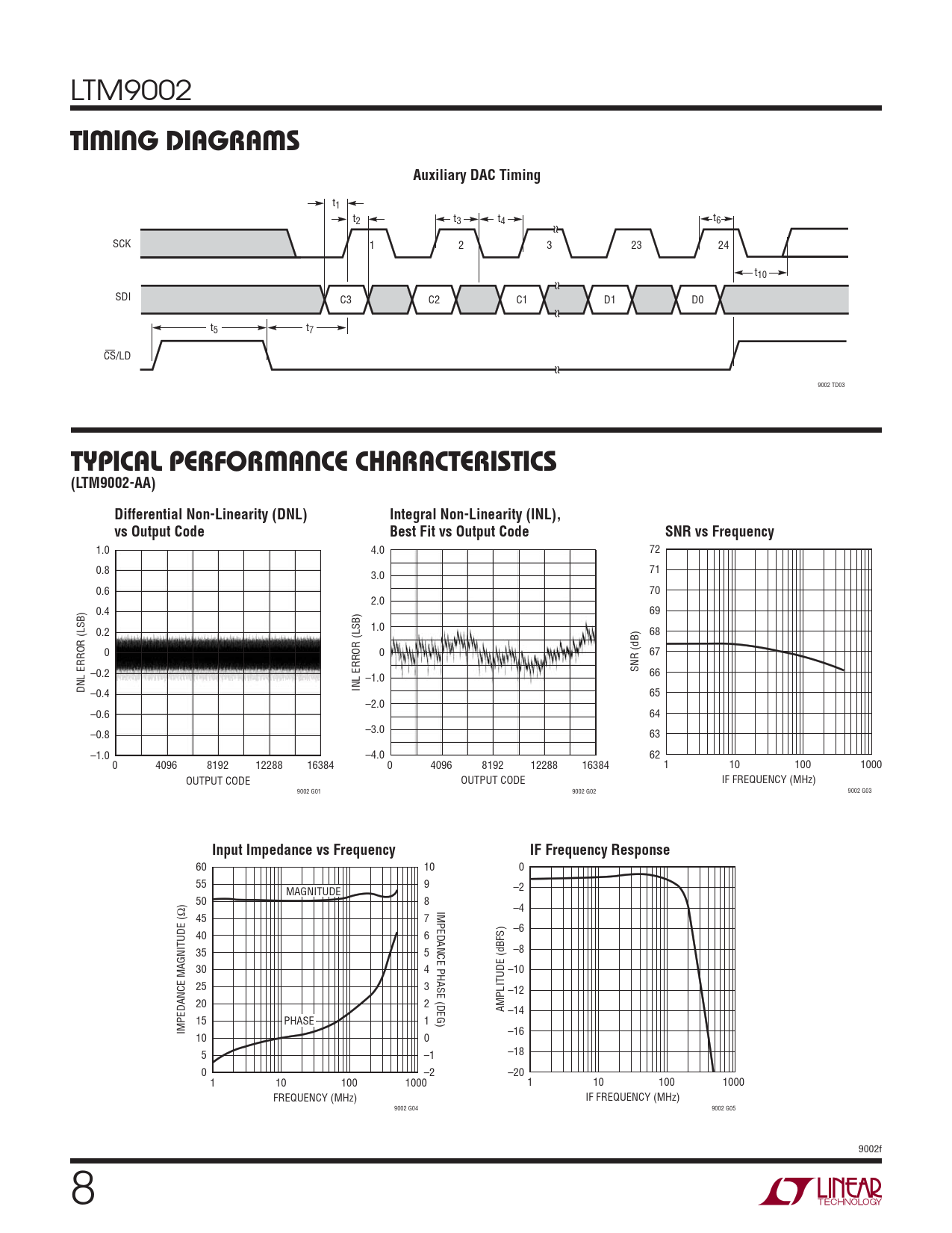 TIMING DIAGRAMS. Auxiliary DAC Timing. TYPICAL PERFORMANCE CHARACTERISTICS (LTM9002-AA). Differential Non-Linearity (DNL)
