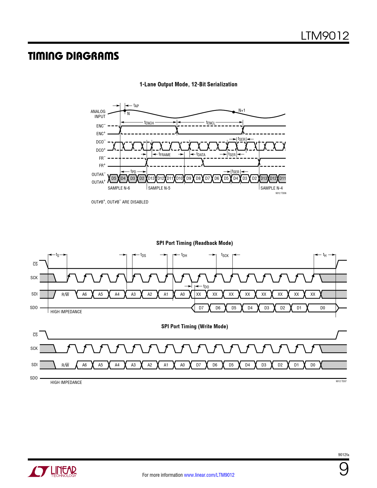TiMing DiagraMs. 1-Lane Output Mode, 12-Bit Serialization. SPI Port Timing (Readback Mode). SPI Port Timing (Write Mode)
