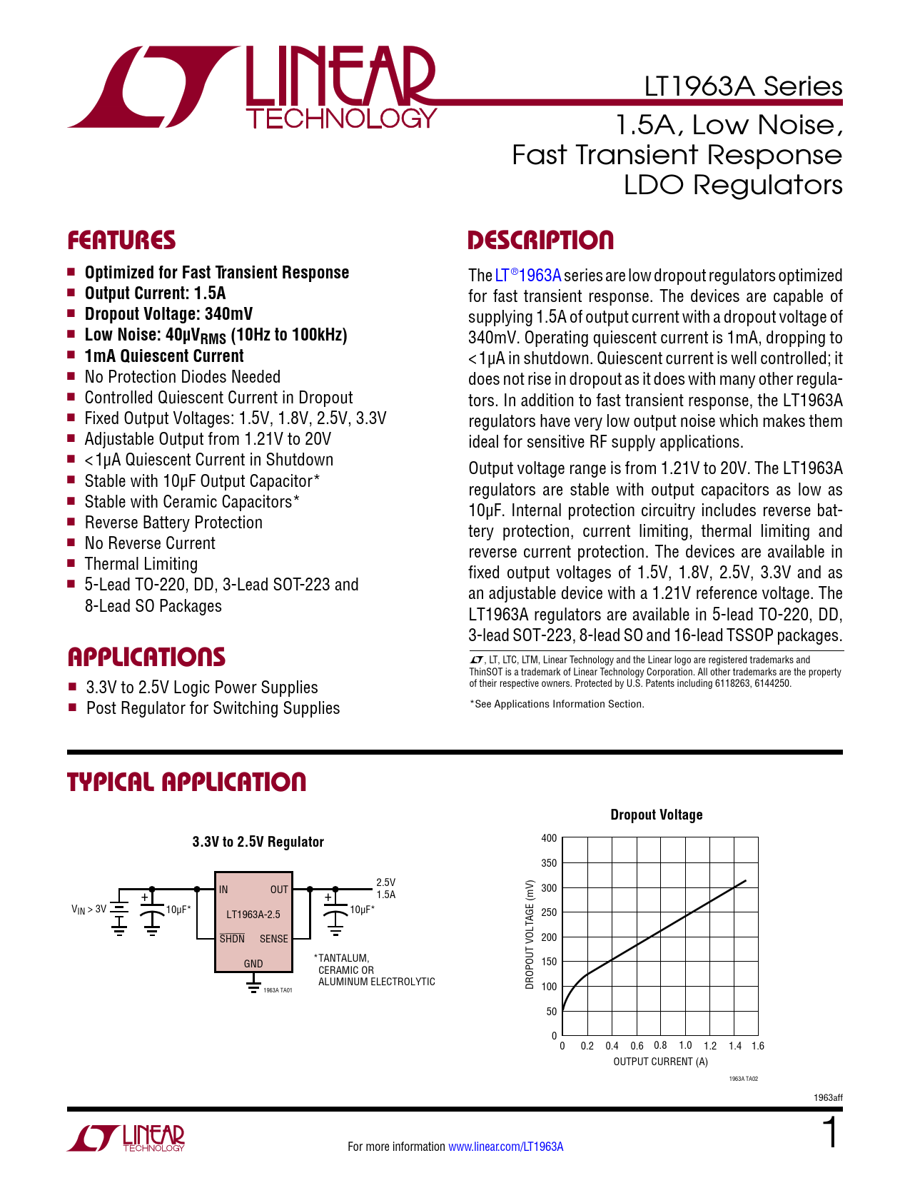 LT1963A Series 1.5A, Low Noise, Fast Transient Response LDO Regulators
