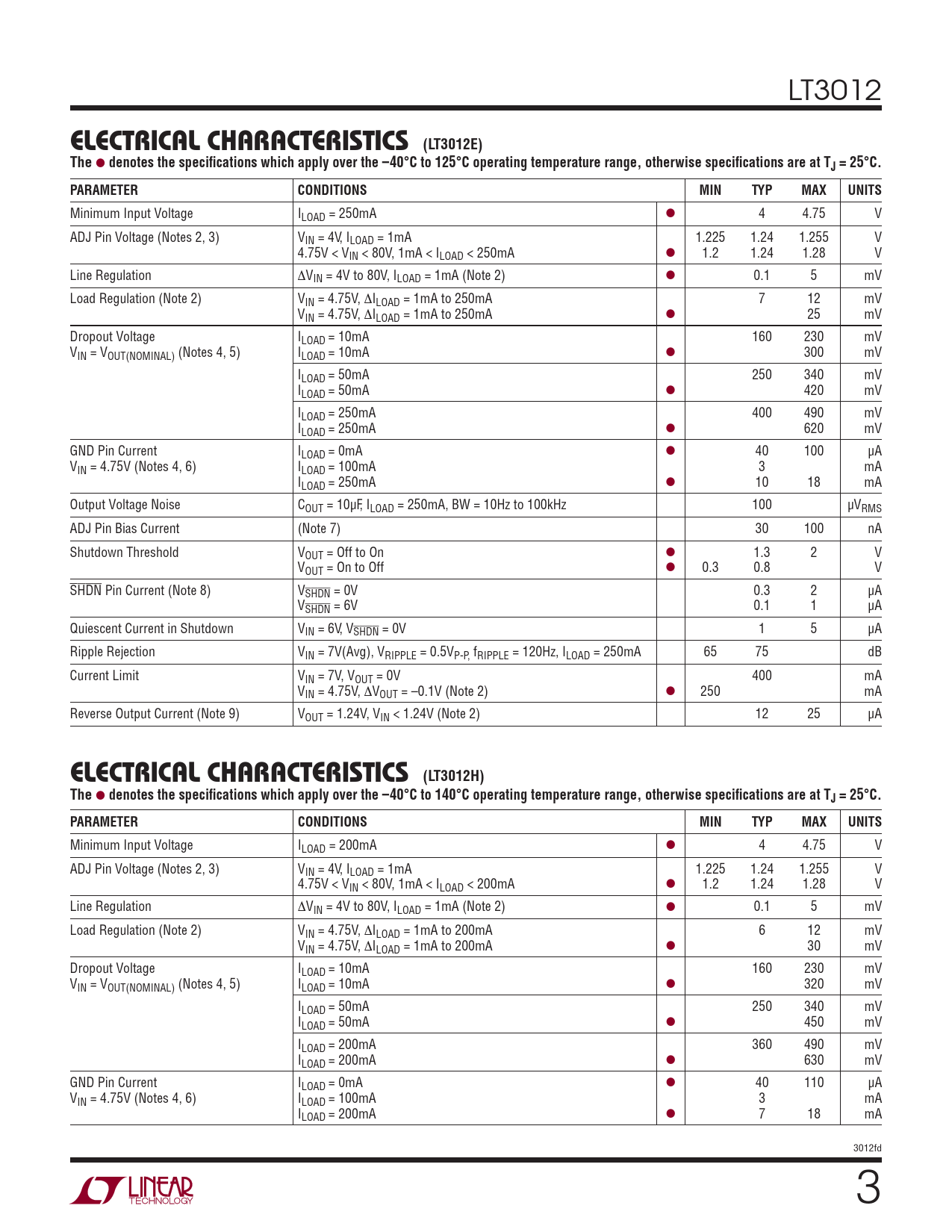 ELECTRICAL CHARACTERISTICS (LT3012E) The