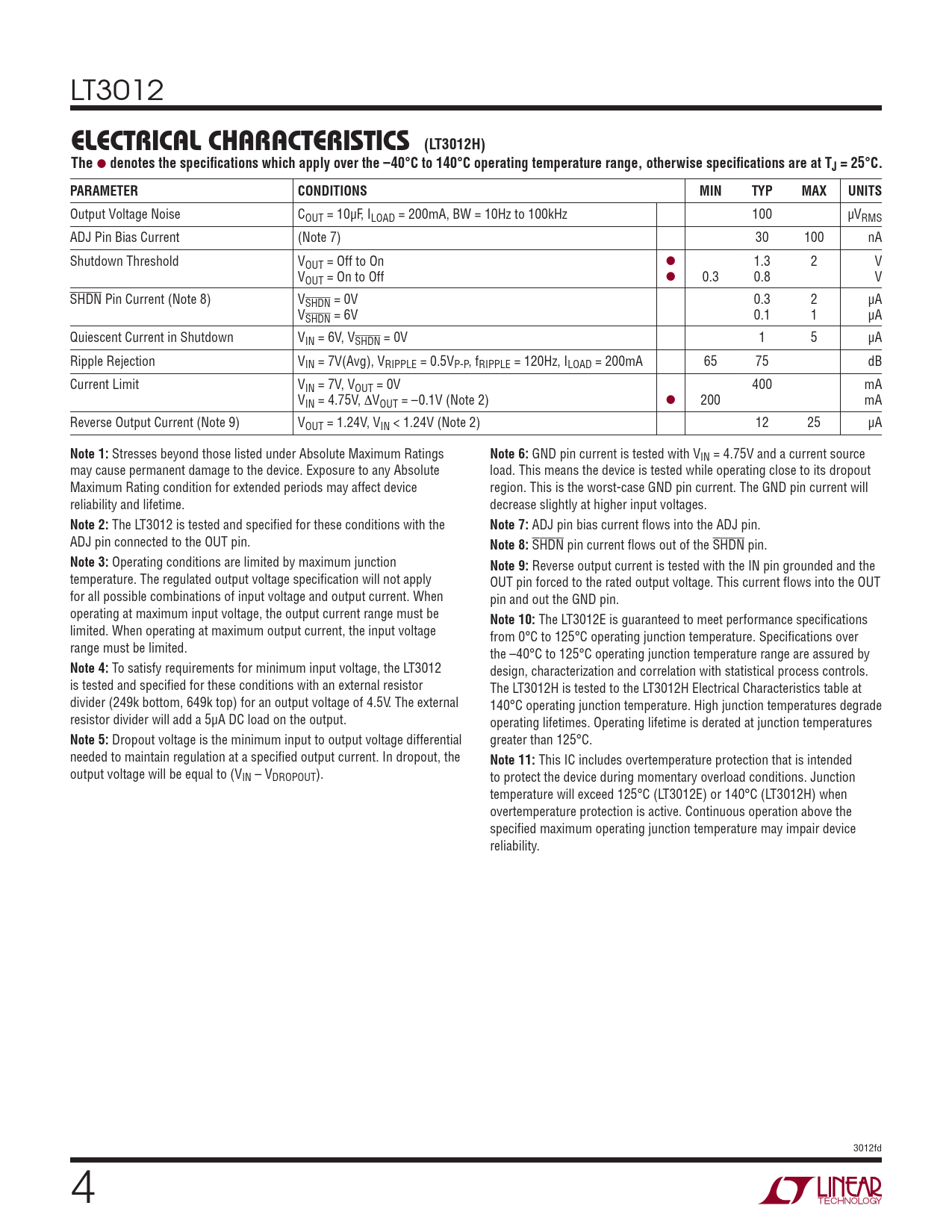 ELECTRICAL CHARACTERISTICS (LT3012H) The