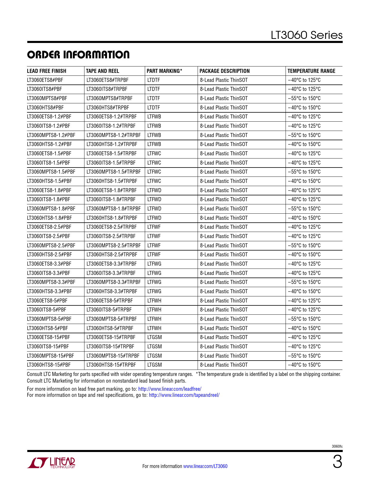 | Páginas / Página | 26 / 3 — orDer inForMaTion. LEAD FREE FINISH. TAPE AND REEL. PART MARKING*. … |