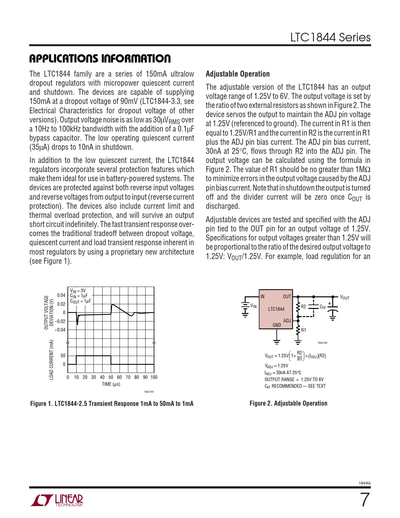 APPLICATIO S I FOR ATIO. Adjustable Operation. Figure 1. LTC1844-2.5 Transient Response 1mA to 50mA to 1mA