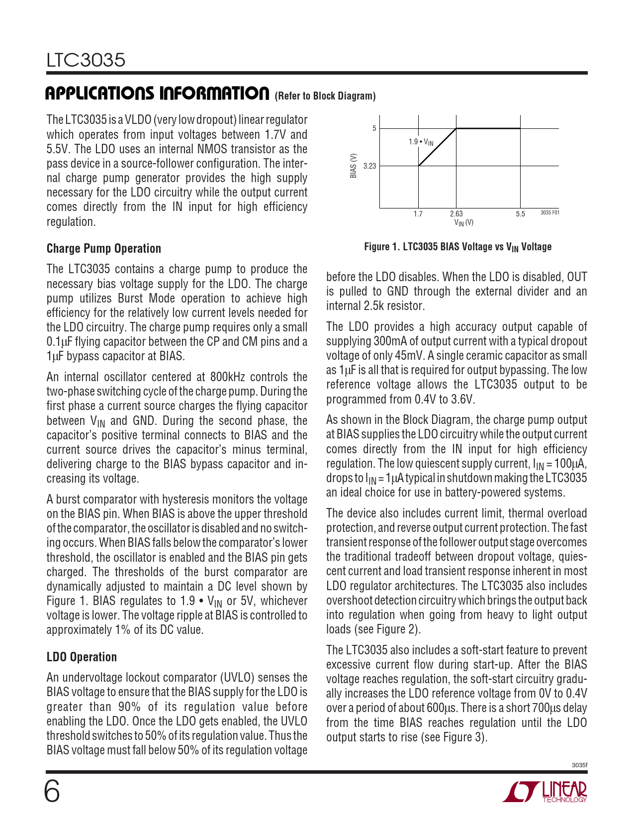 Charge Pump Operation Figure 1. LTC3035 BIAS Voltage vs VIN Voltage