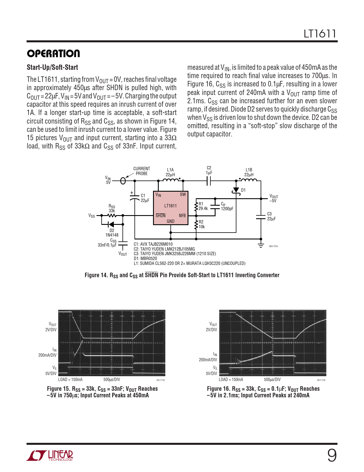 OPERATIO. Start-Up/Soft-Start. Figure 14. RSS and CSS at SHDN Pin Provide Soft-Start to LT1611 Inverting Converter