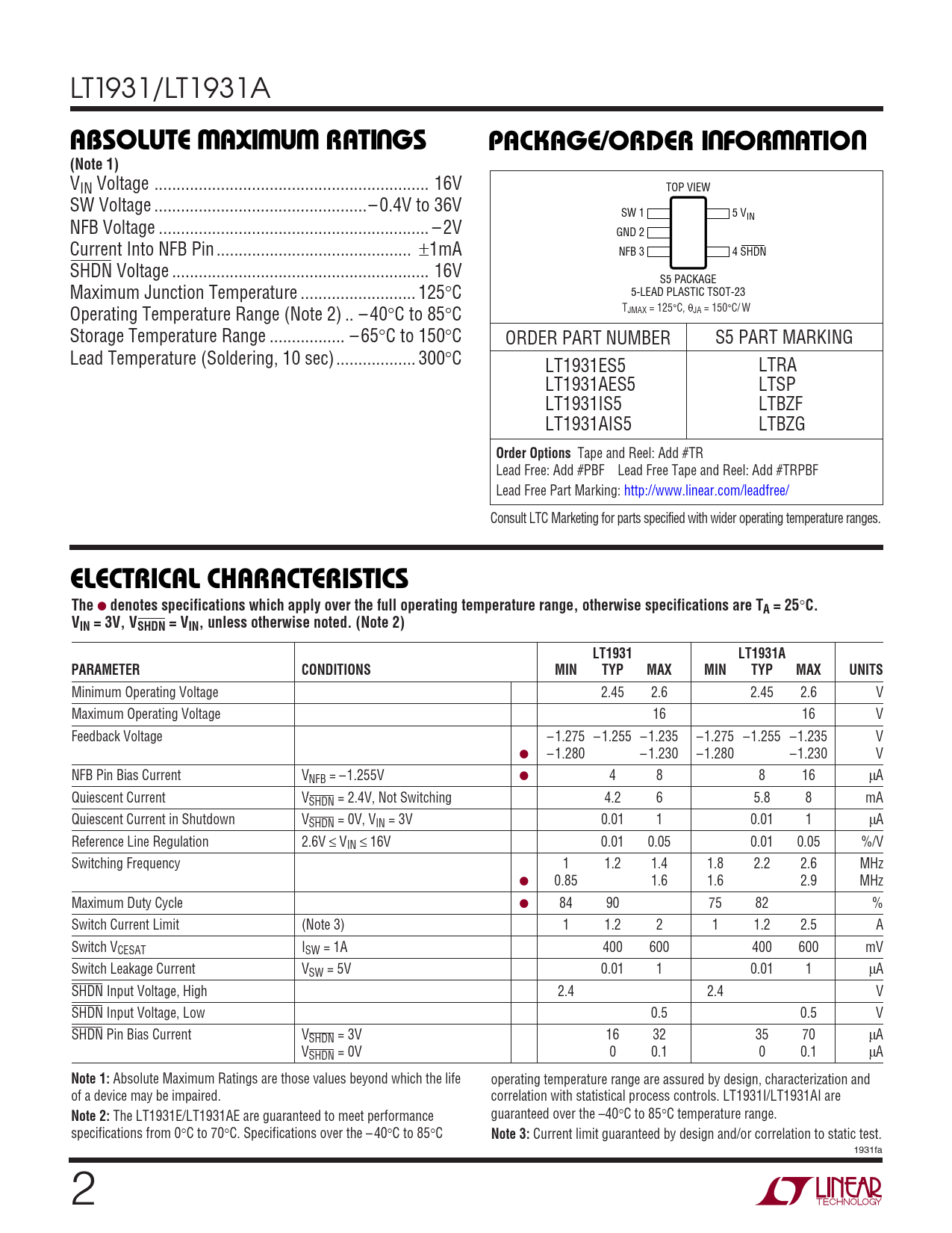 Datasheet LT1931, LT1931A (Analog Devices) - 2