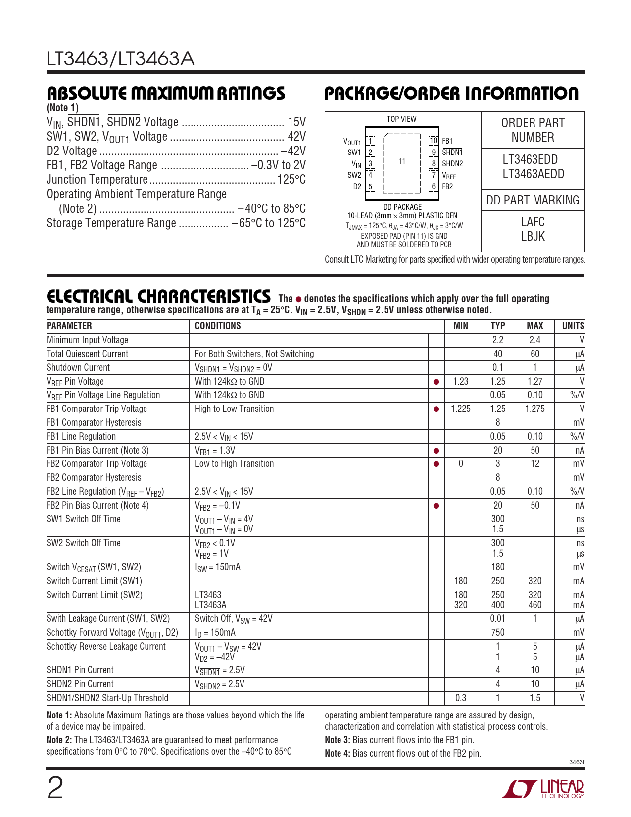 Datasheet LT3463, LT3463A (Analog Devices) - 2