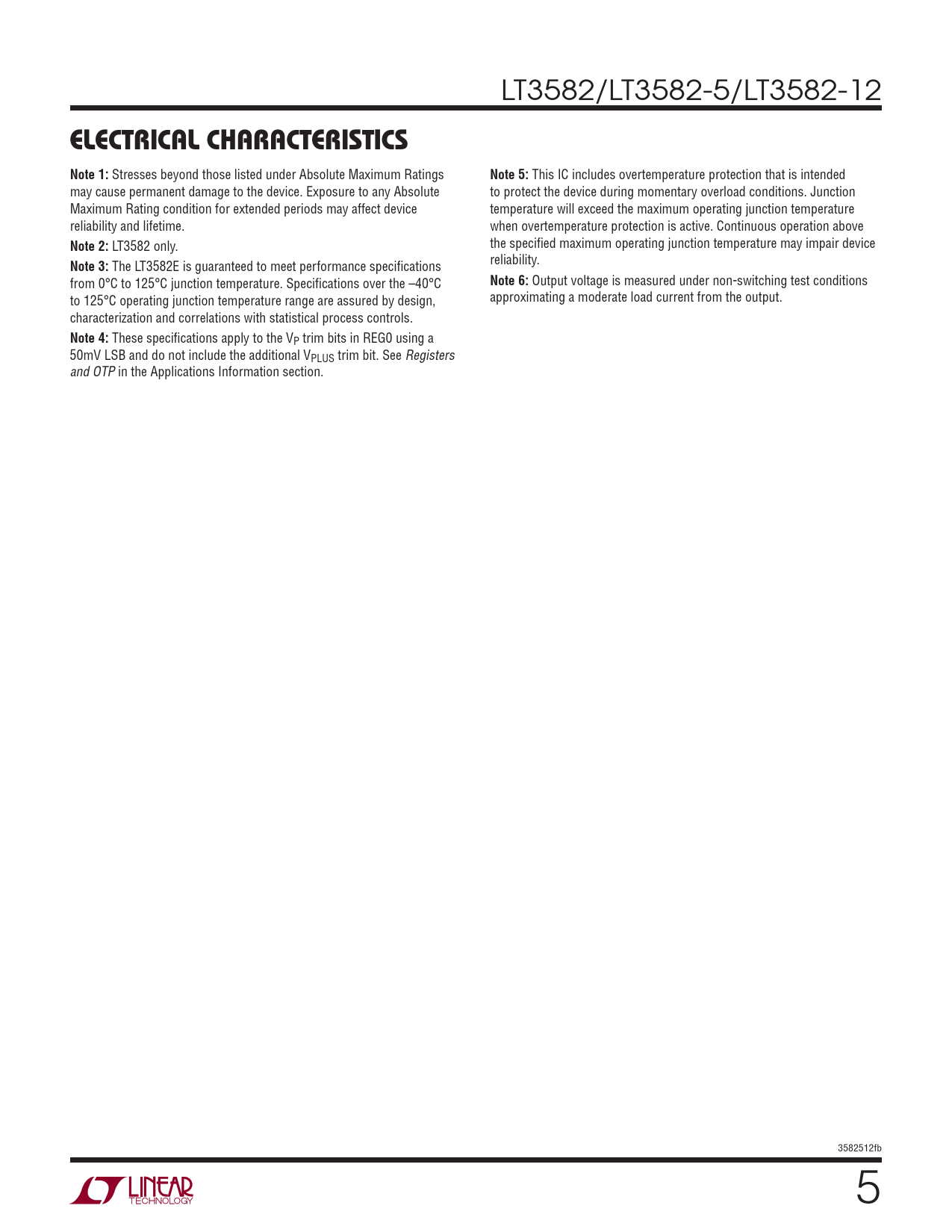 These specifi cations apply to the VP trim bits in REG0 using a 50mV LSB and do not include the additional VPLUS trim bit. See Registers and OTP in the Applications Information section. 3582512fb 5