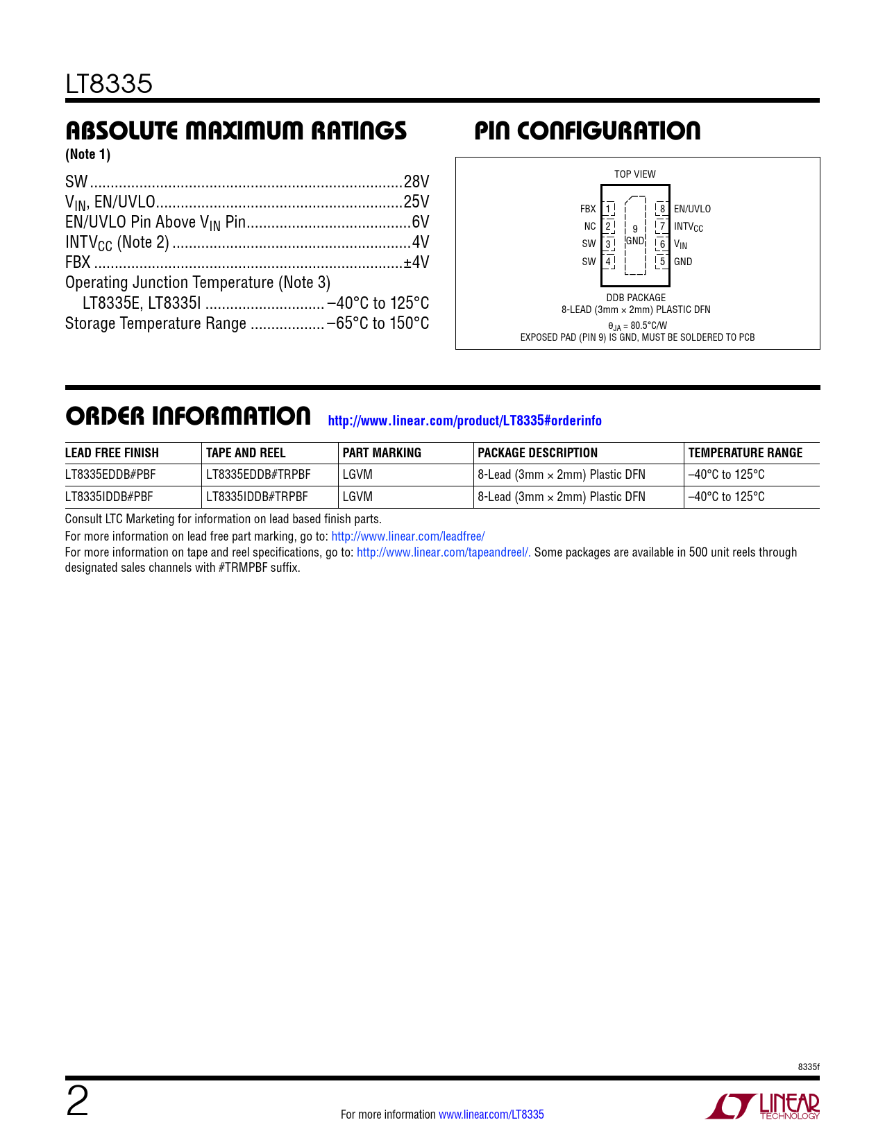 ABSOLUTE MAXIMUM RATINGS PIN CONFIGURATION (Note 1) ORDER INFORMATION http://www.linear.com/product/LT8335#orderinfo