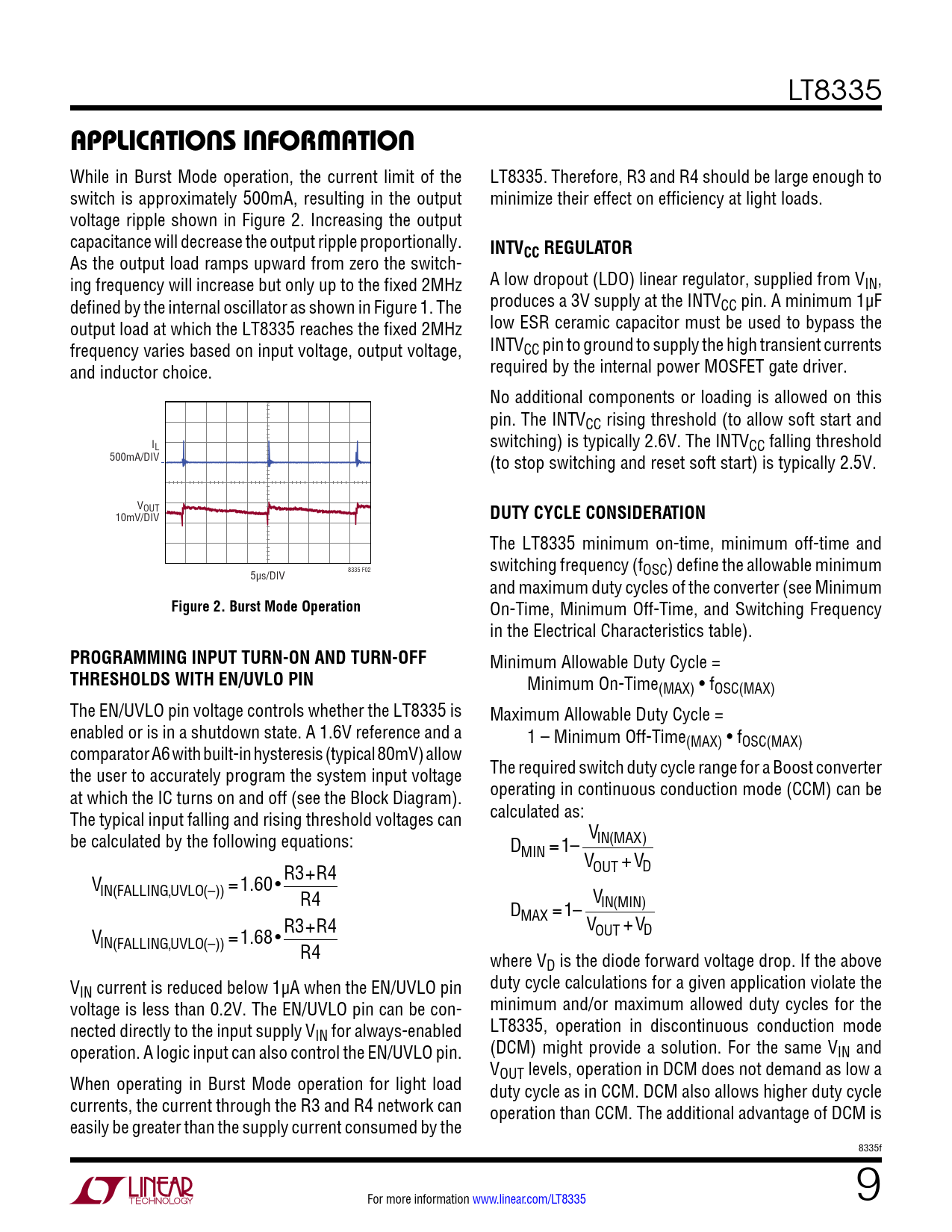 APPLICATIONS INFORMATION. INTV. CC REGULATOR. DUTY CYCLE CONSIDERATION. Figure 2. Burst Mode Operation