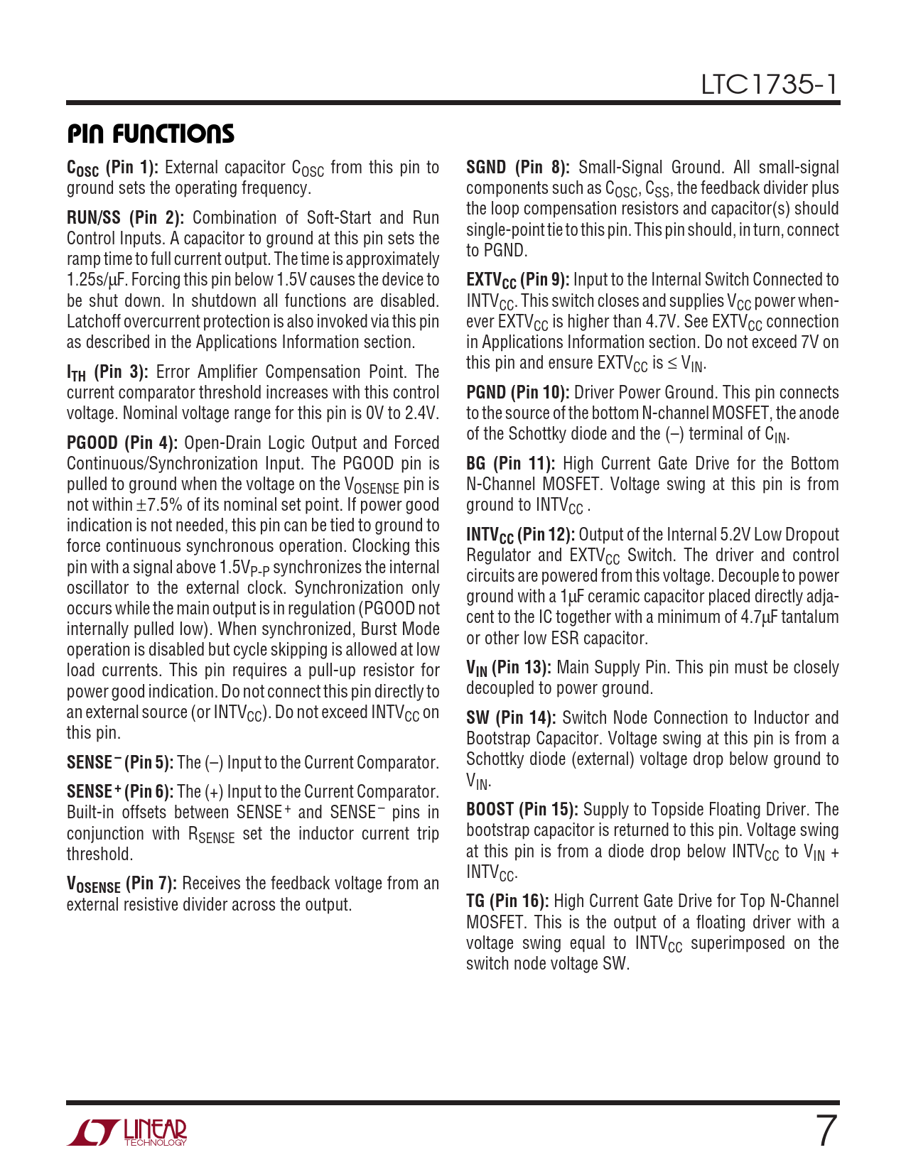 Páginas / Página28 / 7 — PI FU CTIO S. COSC (Pin 1):. SGND (Pin 8):. RUN/SS (Pin 2):. EXTVCC (Pin …