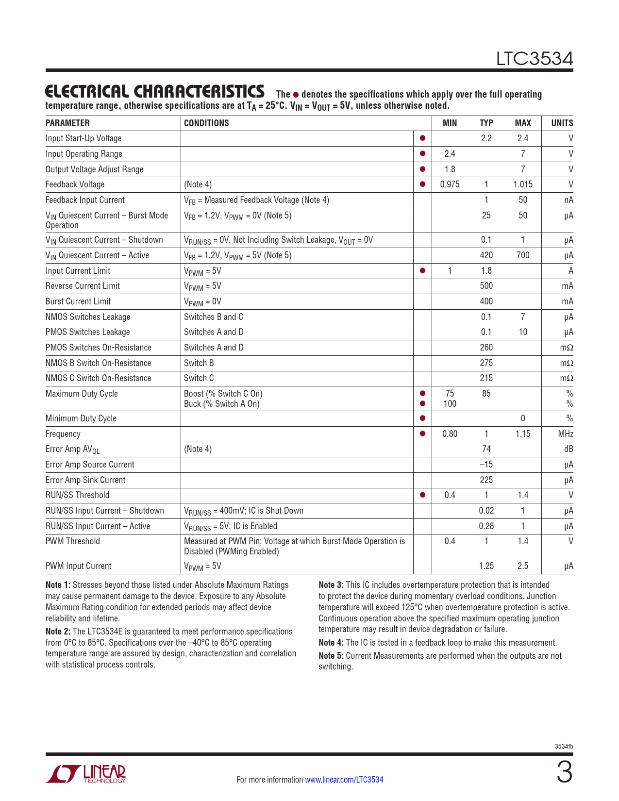 Current Measurements are performed when the outputs are not with statistical process controls. switching. 3534fb For more information www.linear.com/LTC3534 3 Document Outline Features Applications Description Typical Application Absolute Maximum Ratings Pin Configuration Order Information Electrical Characteristics Typical Performance Characteristics Pin Functions Block Diagram Operation Applications Information Typical Applications Package Description Revision History Related Parts