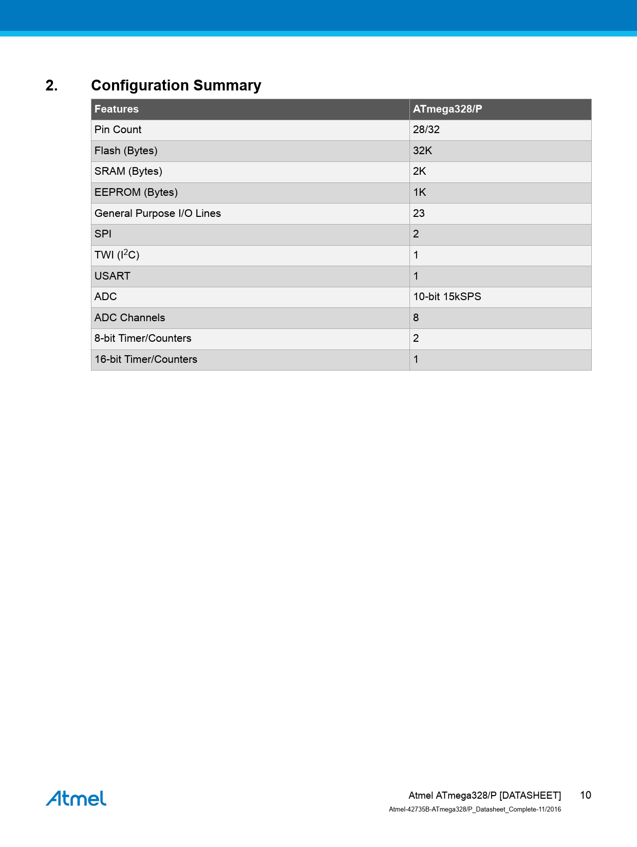 2. Configuration Summary Features ATmega328/P