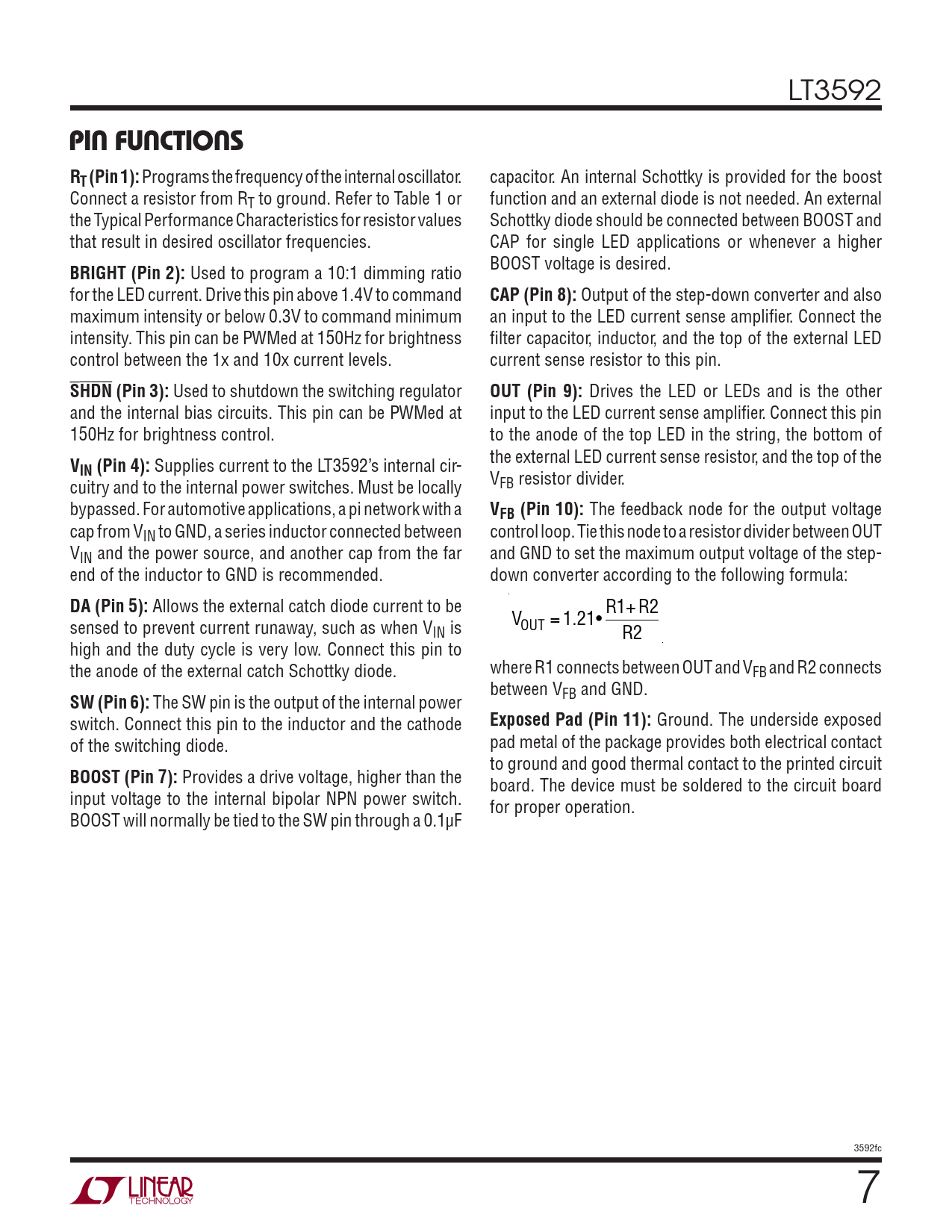 Páginas / Página24 / 7 — PIN FUNCTIONS. RT (Pin 1):. BRIGHT (Pin 2):. CAP (Pin 8):. SHDN (Pin 3):. …