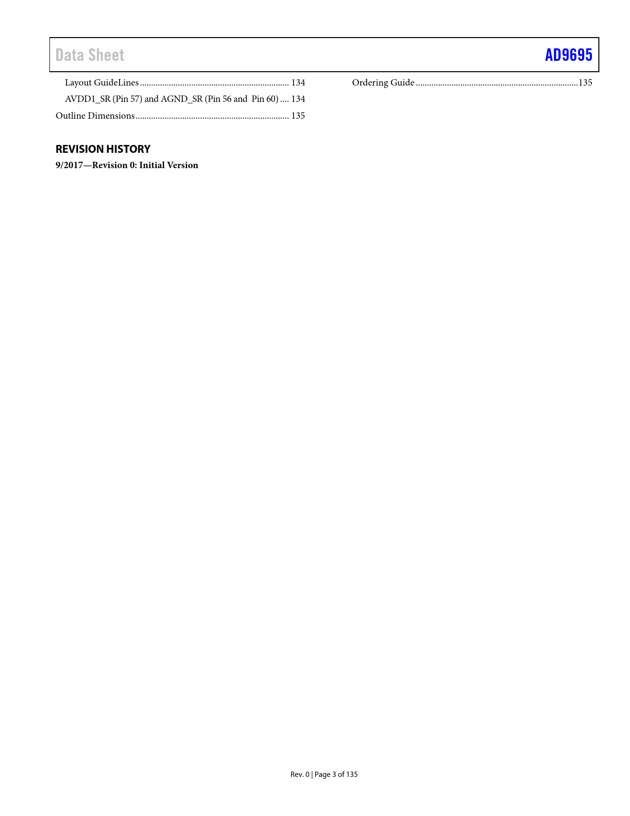 Páginas / Página136 / 4 — Data Sheet. AD9695. REVISION HISTORY. 9/2017—Revision 0: Initial Version