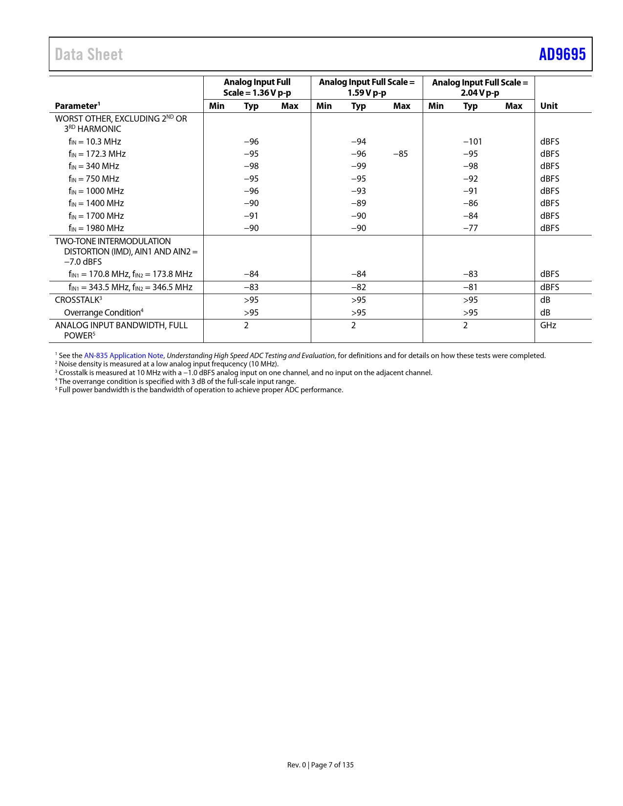 Data Sheet. AD9695. Analog Input Full. Analog Input Full Scale =. Scale = 1.36 V p-p. 1.59 V p-p. 2.04 V p-p. Parameter1