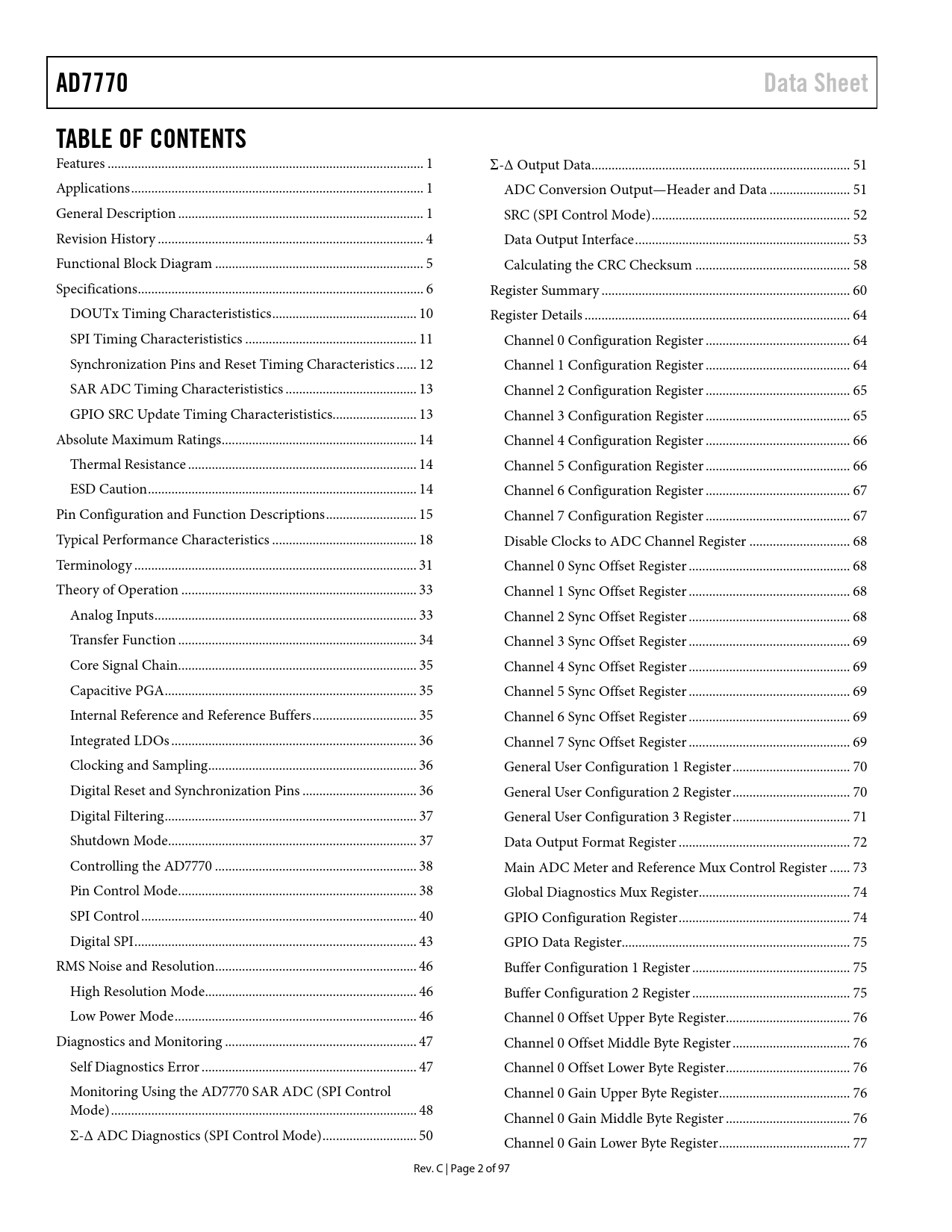 Páginas / Página98 / 3 — AD7770. Data Sheet. TABLE OF CONTENTS