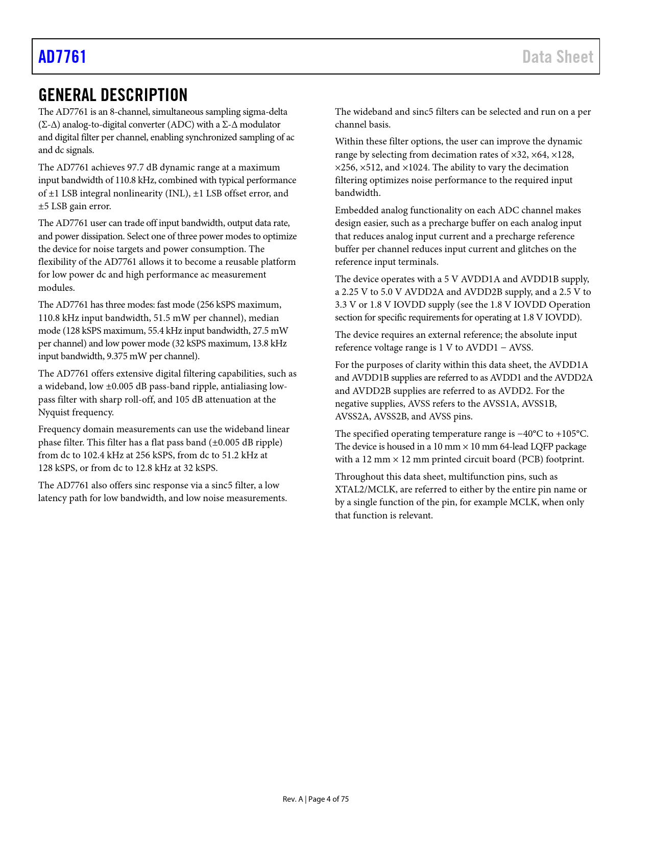 Páginas / Página76 / 5 — AD7761. Data Sheet. GENERAL DESCRIPTION