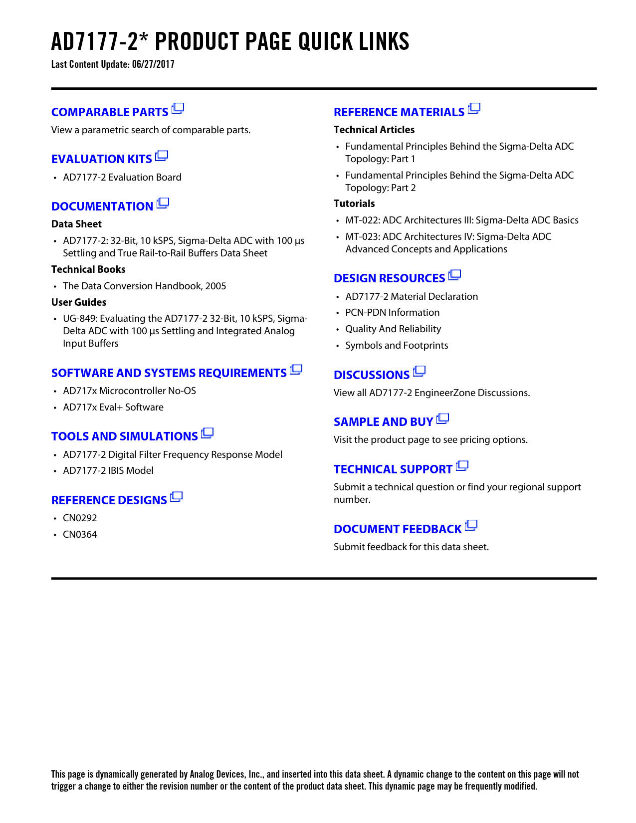 AD7177-2* PRODUCT PAGE QUICK LINKS Last Content Update: 06/27/2017. COMPARABLE PARTS. REFERENCE MATERIALS. Technical Articles