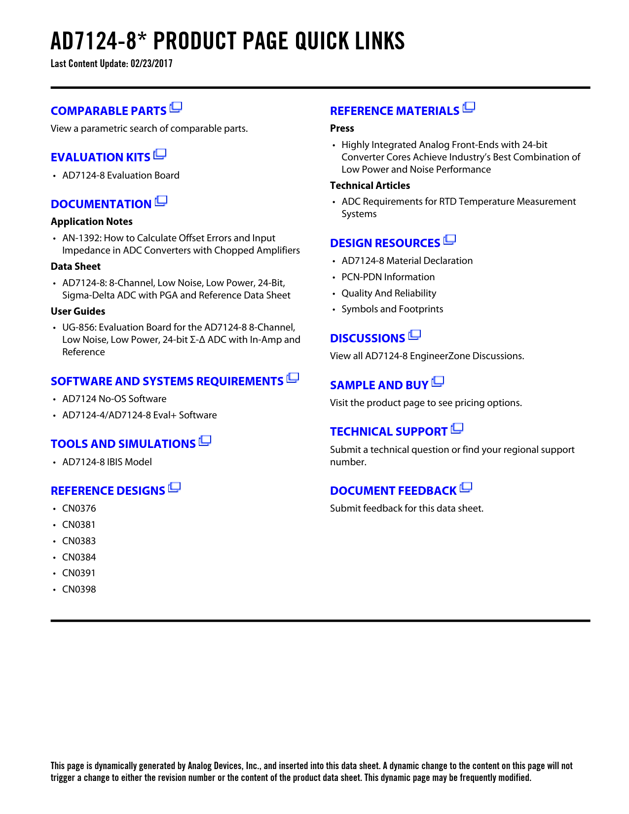 This page is dynamically generated by Analog Devices, Inc., and inserted into this data sheet. A dynamic change to the content on this page will not trigger a change to either the revision number or the content of the product data sheet. This dynamic page may be frequently modified.