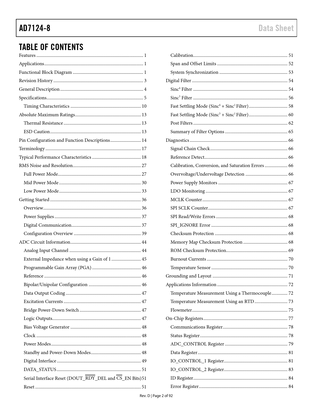 Páginas / Página93 / 3 — AD7124-8. Data Sheet. TABLE OF CONTENTS
