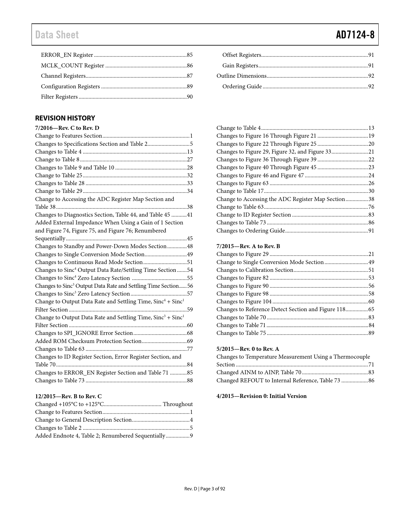 Data Sheet AD7124-8 REVISION HISTORY 7/2016—Rev C to Rev D 7/2015—Rev A to Rev B 5/2015—Rev 0 to Rev A