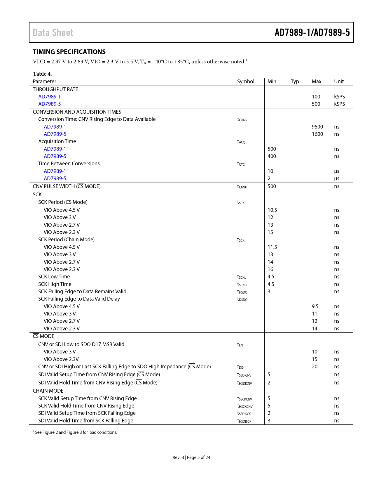 Data Sheet. AD7989-1/AD7989-5. TIMING SPECIFICATIONS. Table 4