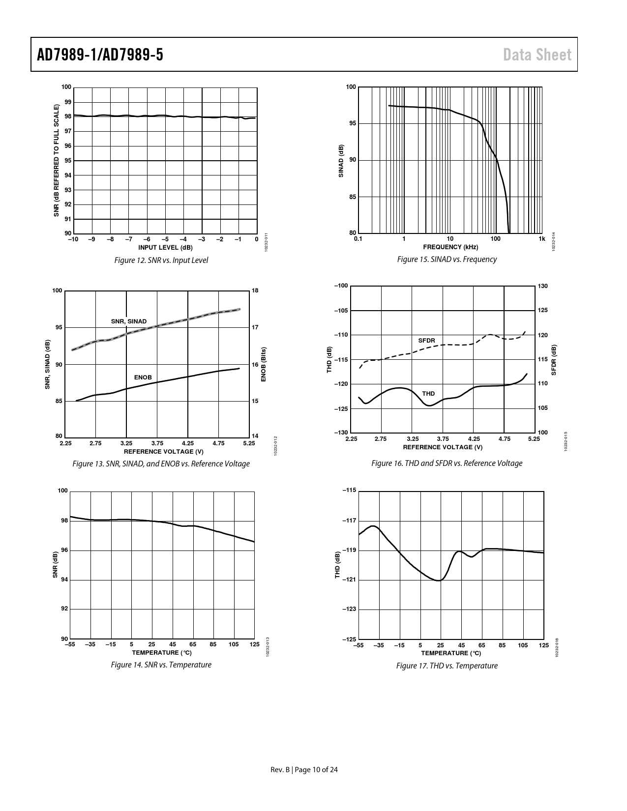 AD7989-1/AD7989-5. Data Sheet. 100. ) E L. SCA L. L U F. INAD (. REF. B d. R ( N S. –10. 0.1. INPUT LEVEL (dB). FREQUENCY (kHz). –100. 130. –105. 125