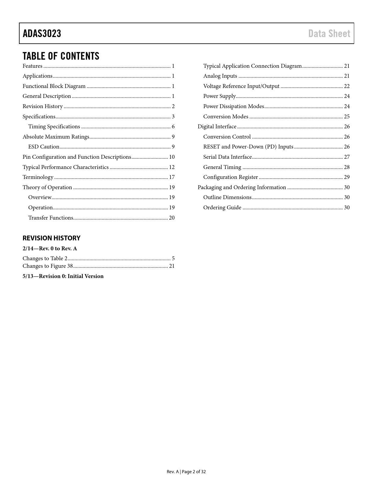 ADAS3023 Data Sheet TABLE OF CONTENTS REVISION HISTORY 2/14—Rev 0 to Rev A 5/13—Revision 0: Initial Version