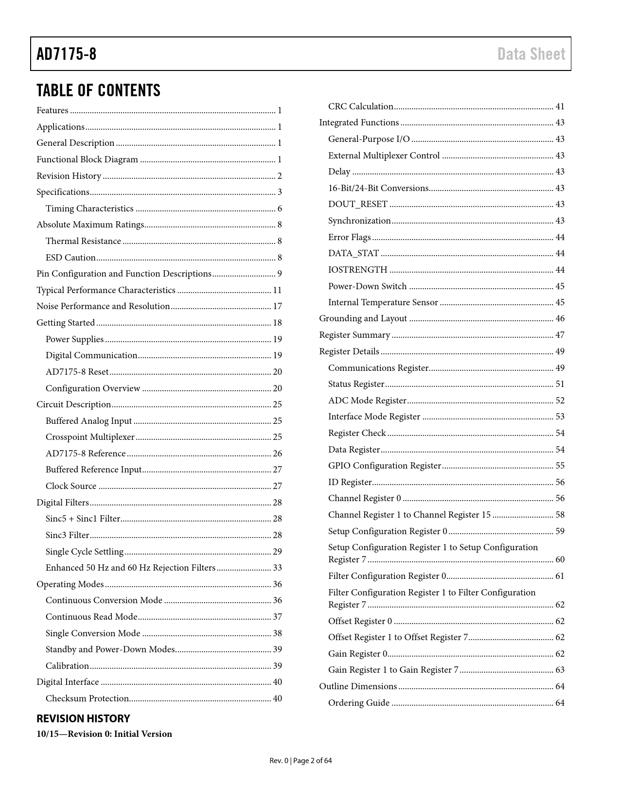 AD7175-8 Data Sheet TABLE OF CONTENTS REVISION HISTORY 10/15—Revision 0: Initial Version
